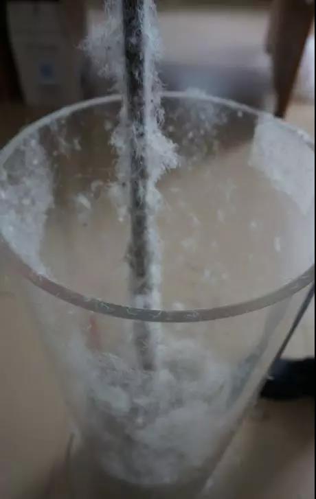 由以上幾個步驟可以看到,“膠水絨”最終變成了一團(照片不是模糊),想象一下,成團成團的羽絨還有自然蓬松的保暖性嗎?消費者購買羽絨服清洗兩三次后,附在絨朵上的羽絲掉落,大量的羽絲造成跑絨、蓬松度降低導致保暖性變差,對品牌的聲譽影響極大!